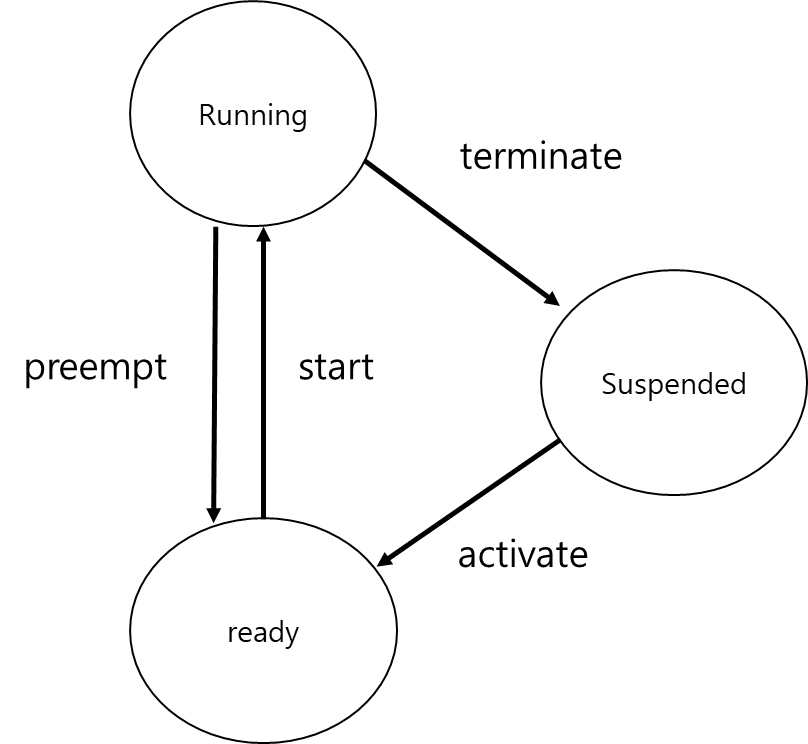 basic Task의 경우는 running, suspended, ready 세 가지의 State를 사용한다.